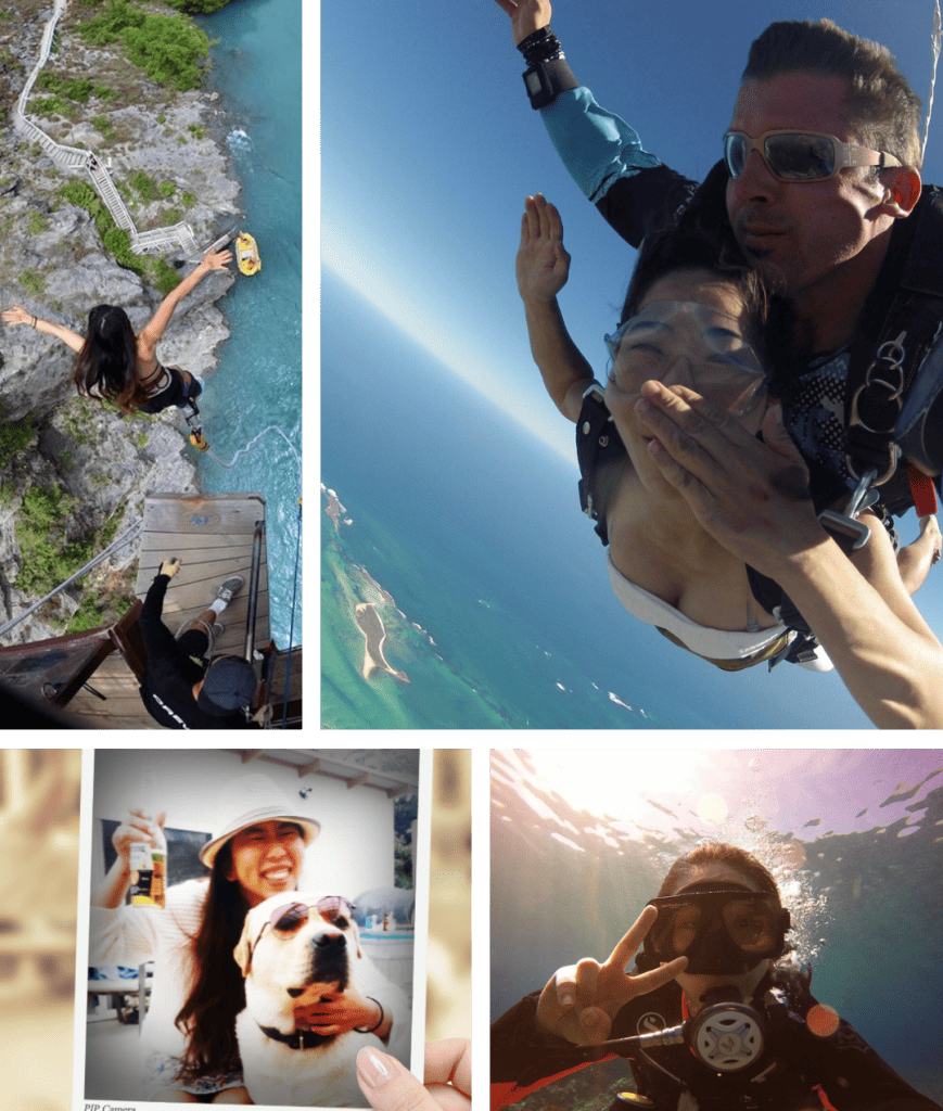 - Ik ben dol op extreme sporten! Duiken, skydiven, bungeejumpen – ik heb het allemaal geprobeerd.